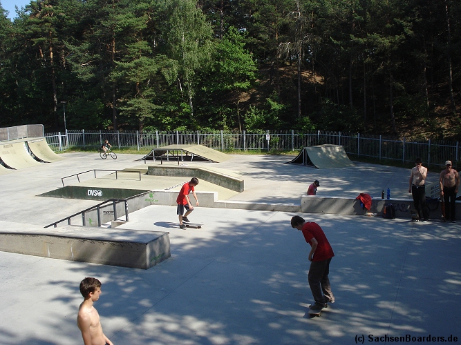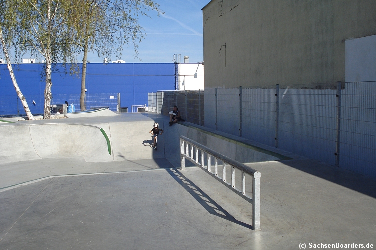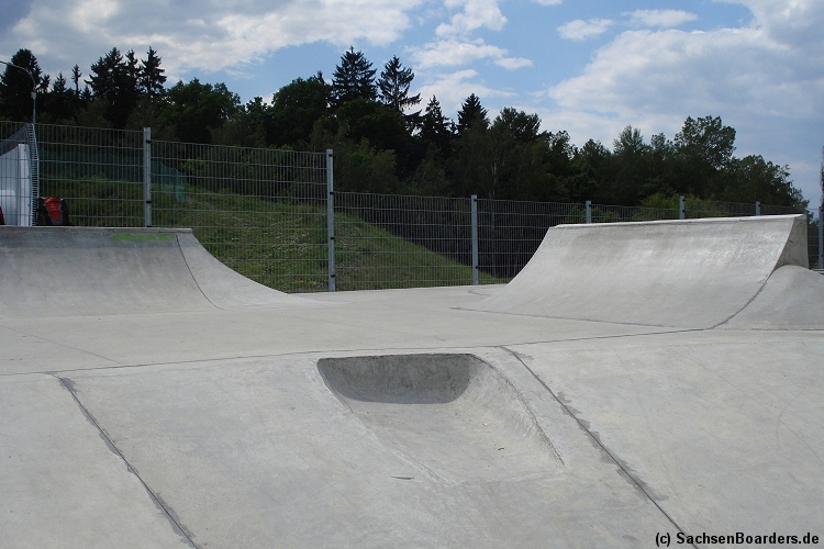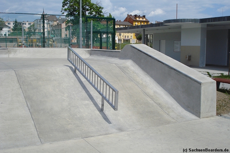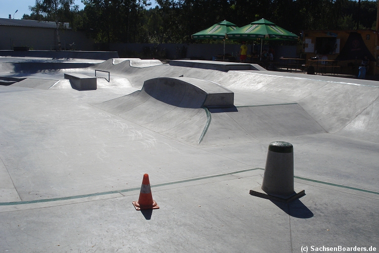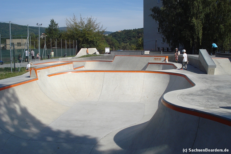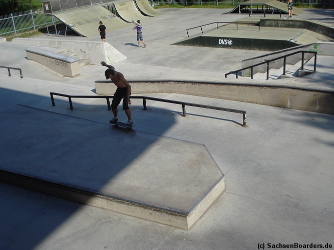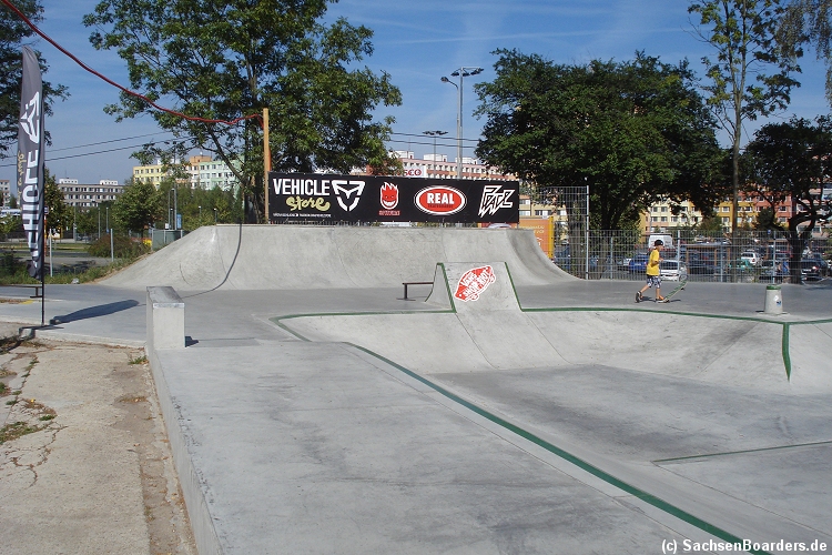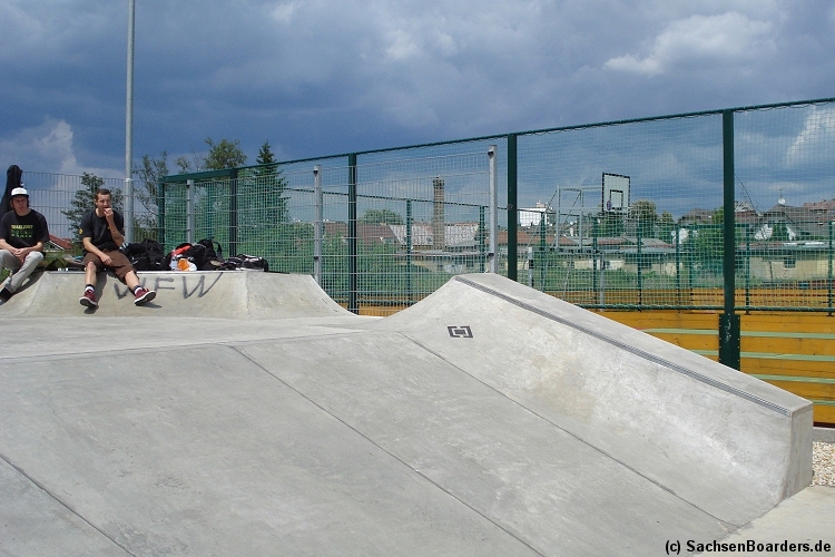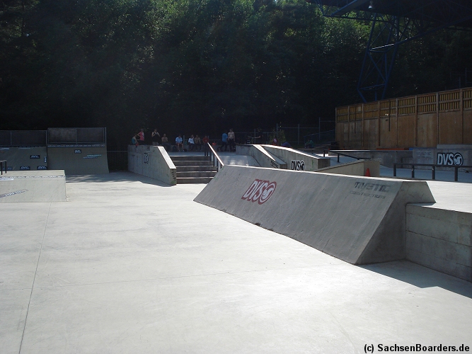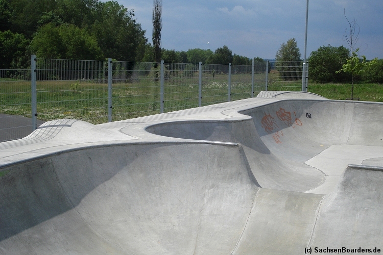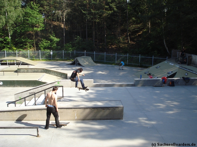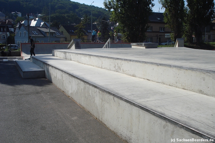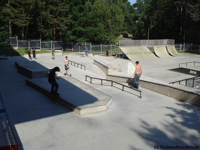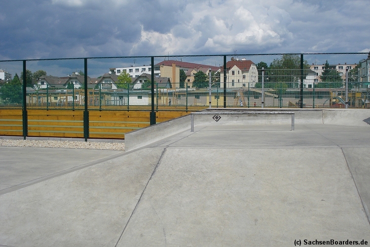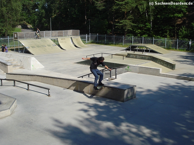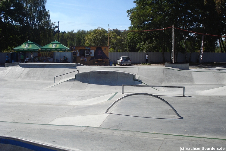Nur etwa eine Autostunde südlich von Chemnitz, am Fuße der böhmischen Seite des Erzgebirges, gibt es gleich 2 Parks in einem und noch einen großen Holzbowl dazu. Einziges Manko ist das auf den Walls des Bowls breit geschmierte Wachs, das vor unseren Augen von einem Inliner demonstrativ auf das Coping gerieben wurde.