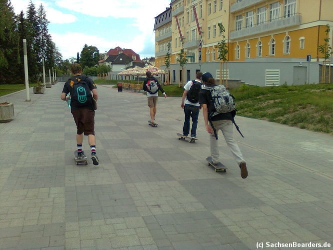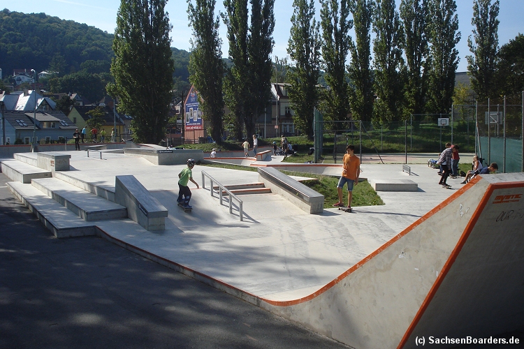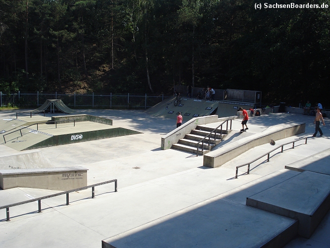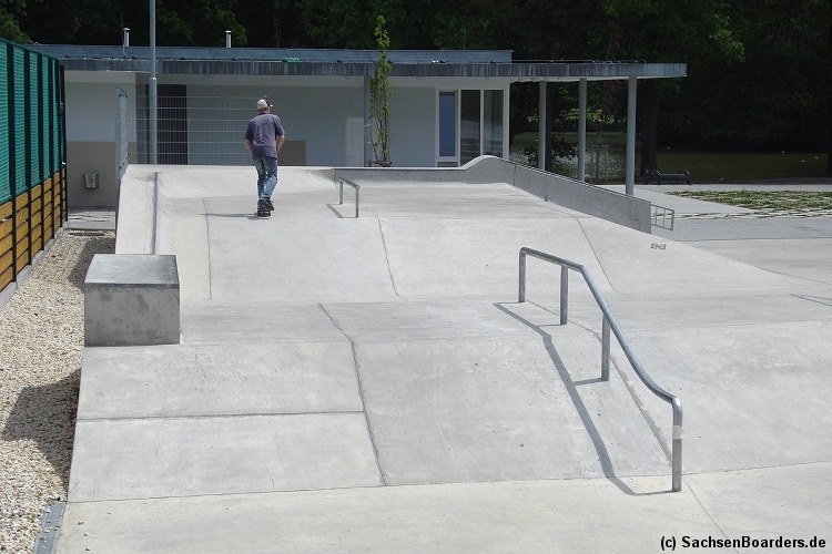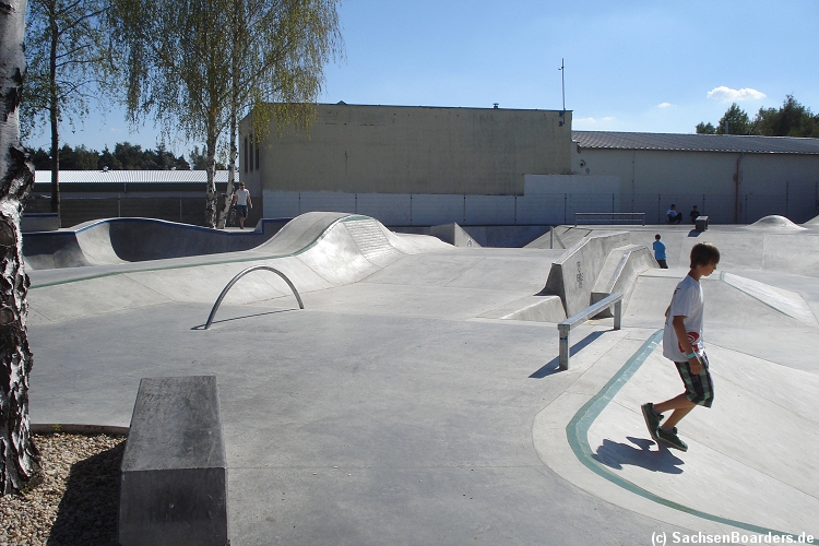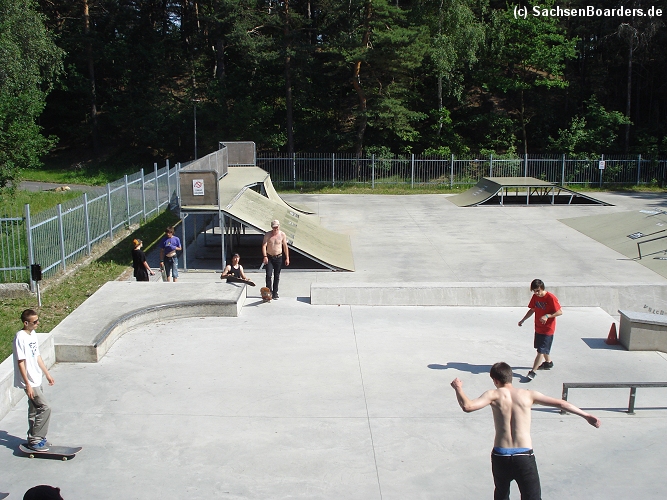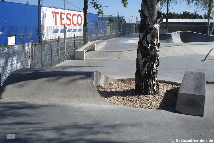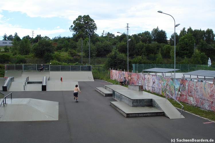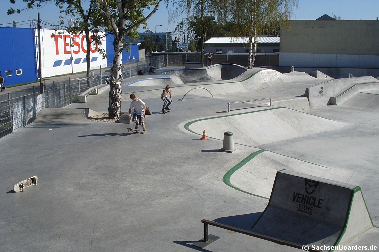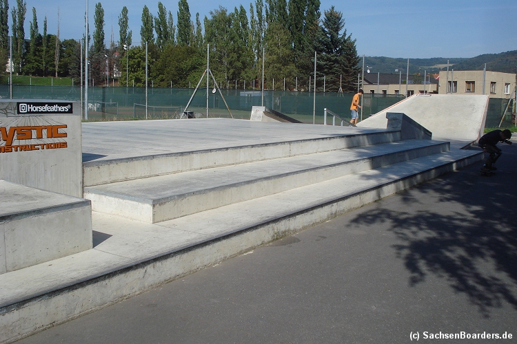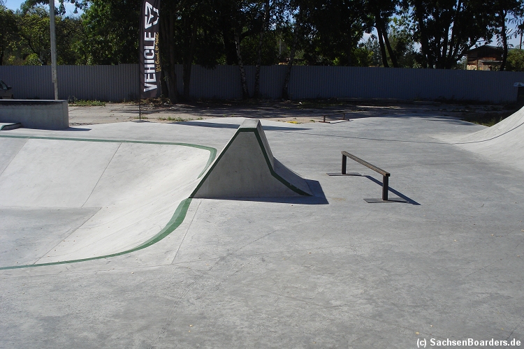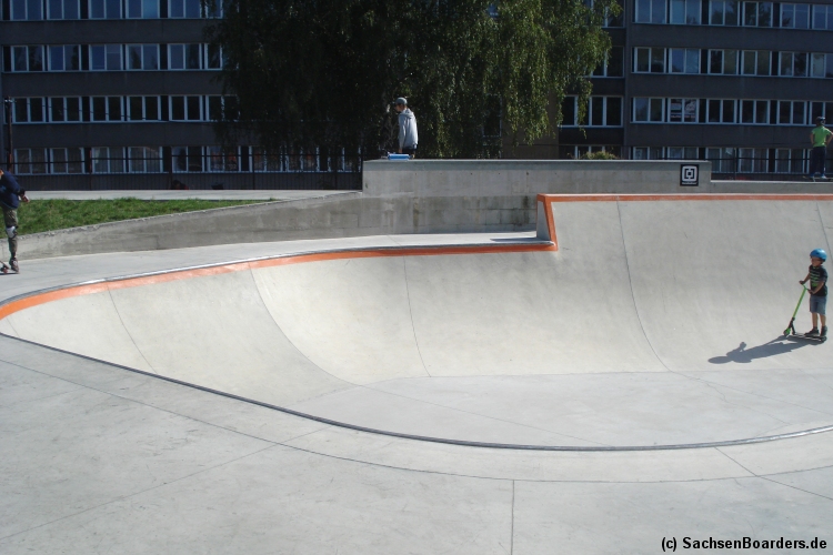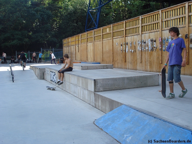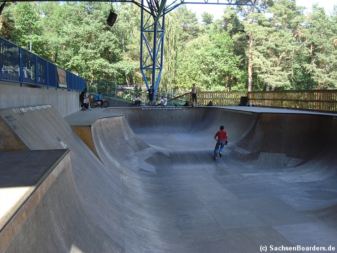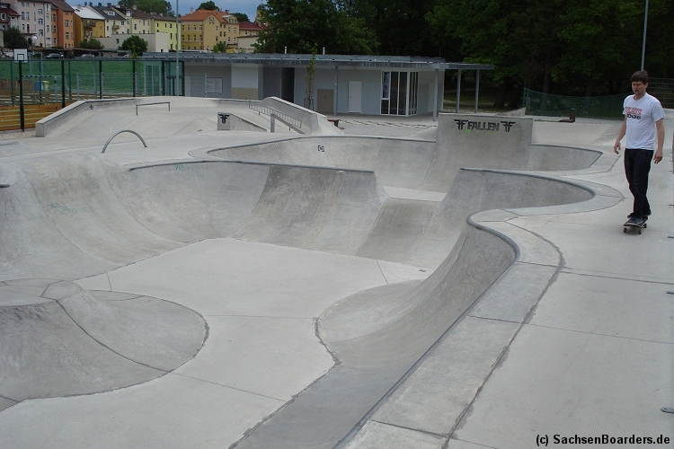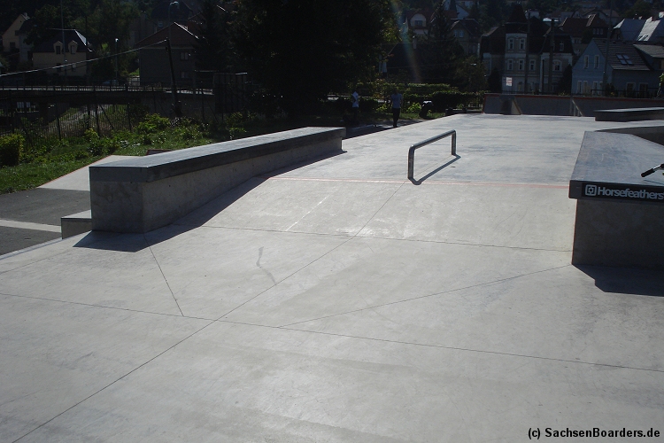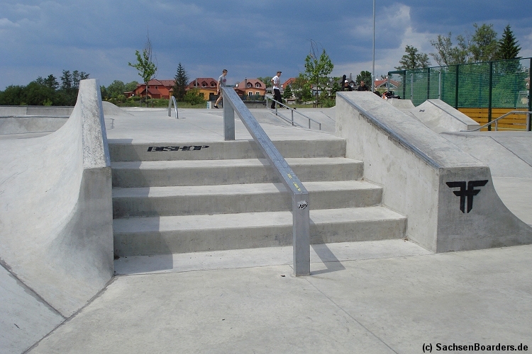 Nur etwa eine Autostunde südlich von Chemnitz, am Fuße der böhmischen Seite des Erzgebirges, gibt es gleich 2 Parks in einem und noch einen großen Holzbowl dazu. Einziges Manko ist das auf den Walls des Bowls breit geschmierte Wachs, das vor unseren Augen von einem Inliner demonstrativ auf das Coping gerieben wurde.